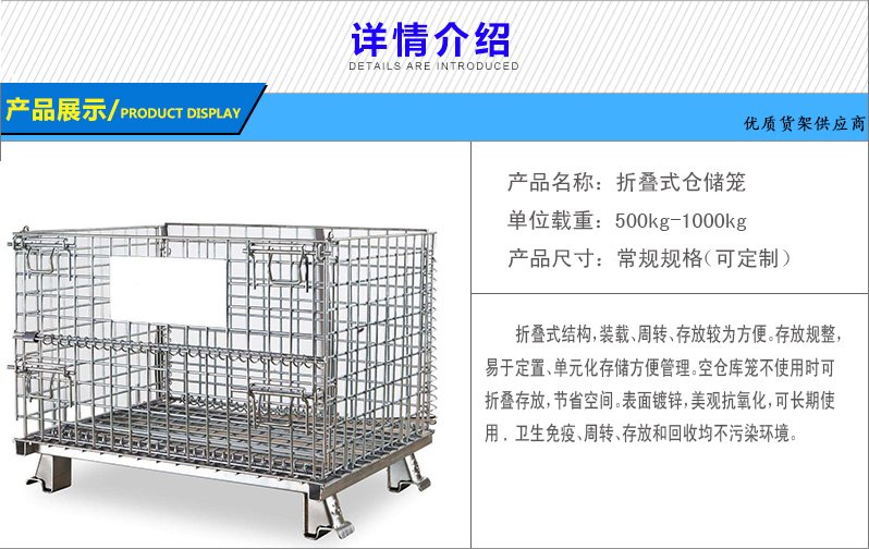 折疊式倉儲籠的設計是為了隨時存取提供了方便,在堆疊存儲時,可以隨時打開小門存入或取出物品,免除翻倉的麻煩。而且折疊后存放,大大節(jié)省了空間。不可折疊式倉儲籠因經過特殊加固處理,因此承重量較大,一般可堆疊較多層。